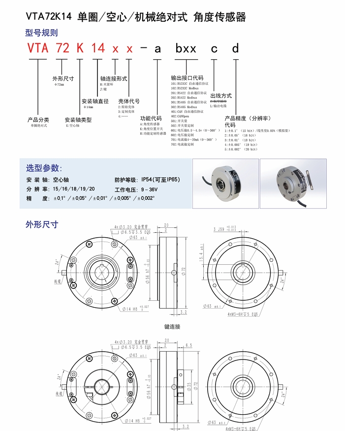 类 型:绝对值传感器、空心角度传感器、角度传感器、中空传感器、空心编码器